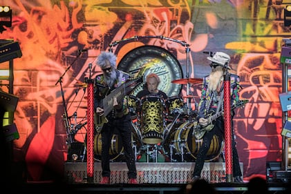 ZZ Top Perform At Viejas Casino ALPINE, CALIFORNIA - NOVEMBER 02: (L-R) Elwood Francis, Frank Beard, and Billy Gibbons of ZZ Top perform on stage at Viejas Casino & Resort on November 02, 2025 in Alpine, California. (Photo by Daniel Knighton/Getty Images) (Daniel Knighton/Getty Images)